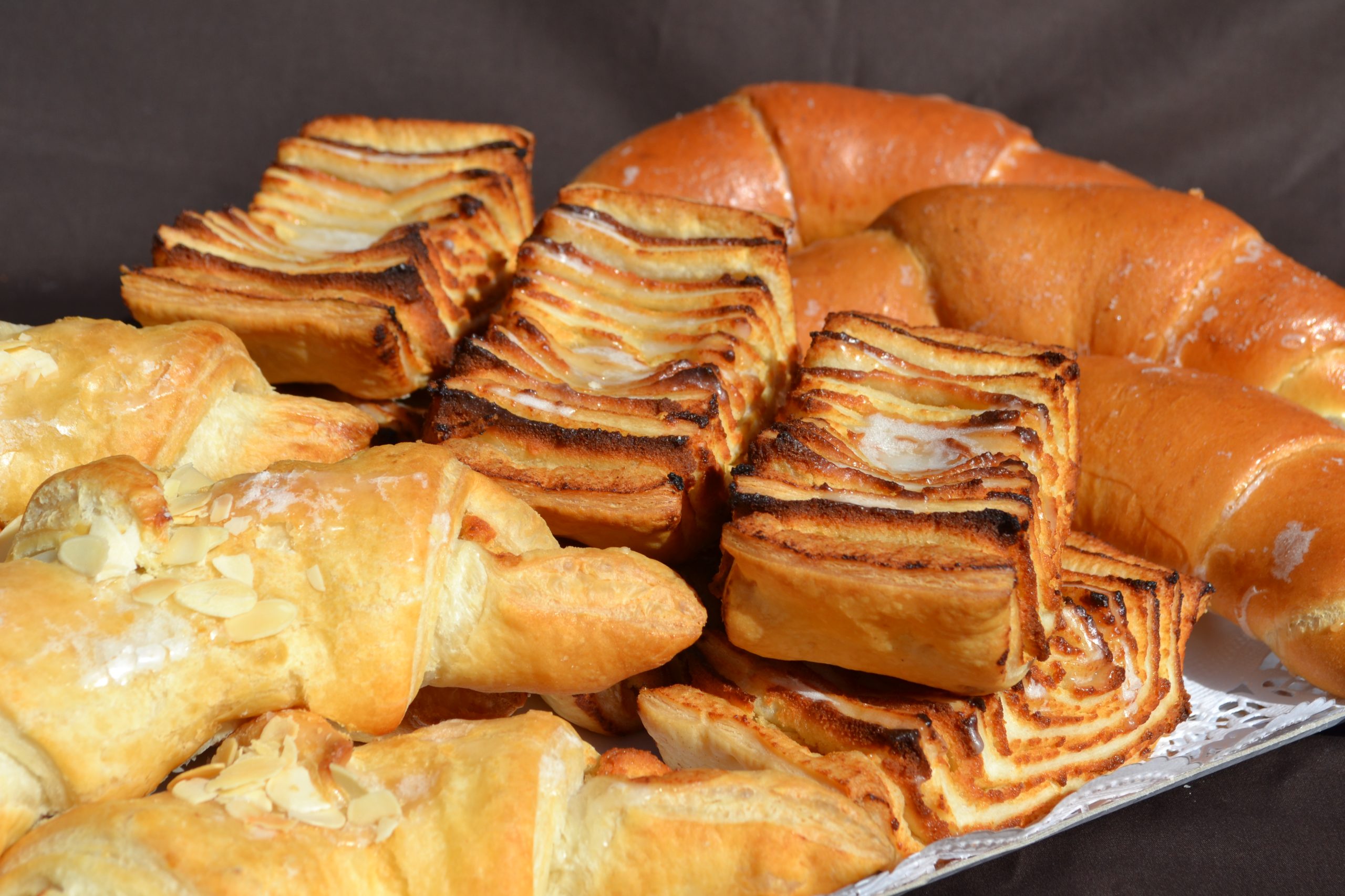 Der Speckmocken, eine Spezialität ganz ohne Fleisch. Die feinen Schichten der selbstgemachten Mandelfüllung und Blätterteig machen das Gebäck unwiederstehlich.